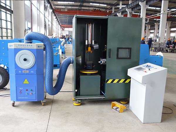 本设备利用气动压头自动装夹冰箱压缩机,等离子切割机割炬。在弧压调高器的控制下可自动跟踪压缩机凹凸不平的外壳,实现连续切割,切割过程中产生的大部分烟气被烟尘净化器吸走。切割过程采用PLC控制,安全实现了自动化。